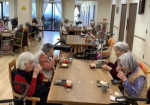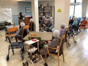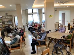 月2回の音楽療法はみなさん本当に楽しみにされていて、毎回大盛況で楽しいメロディーと優しい歌声が流れています。