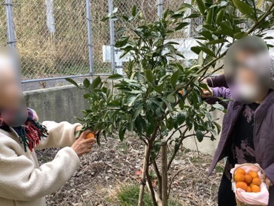 暖かい格好をしていただき、みなさんでみかん狩りをしていただきました。